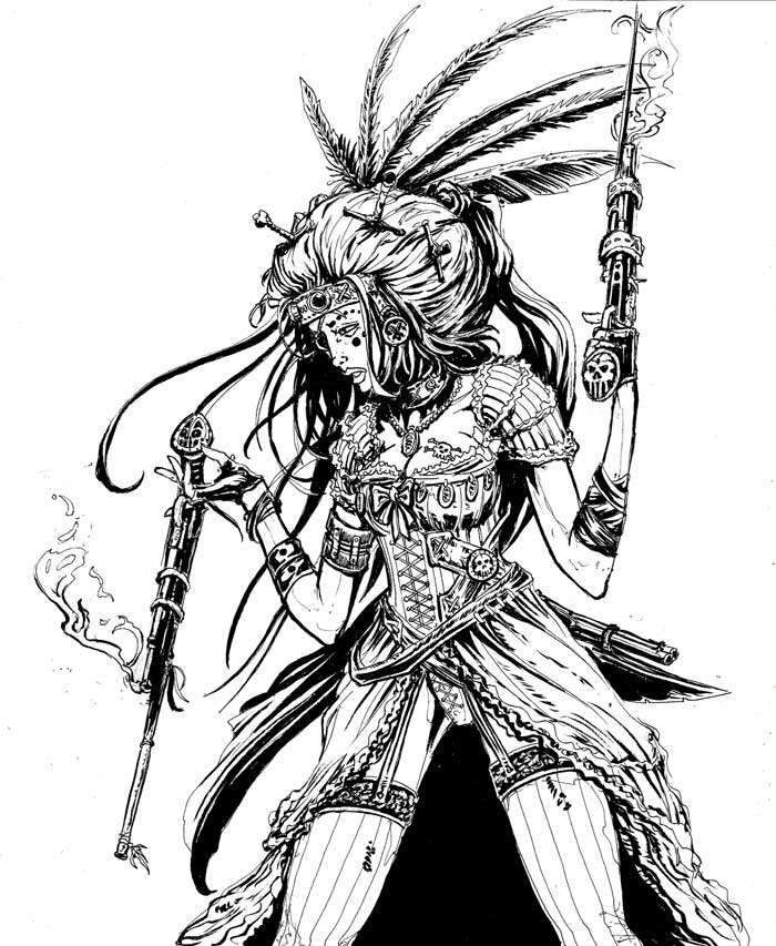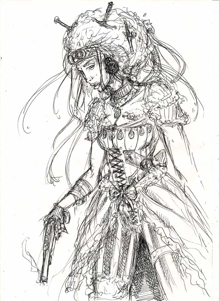 N'oublie pas que tu n'es pas obligé de tout détailler : ce qui est noyé dans l'ombre ou brûlé par la lumière reste visible par l'œil humain qui comble naturellement les trous. Regarde, j'ai volontairement noyé des détails dans le noir complet ou viré carrément certains traits de contour et, pourtant, on lit toujours ton dessin :