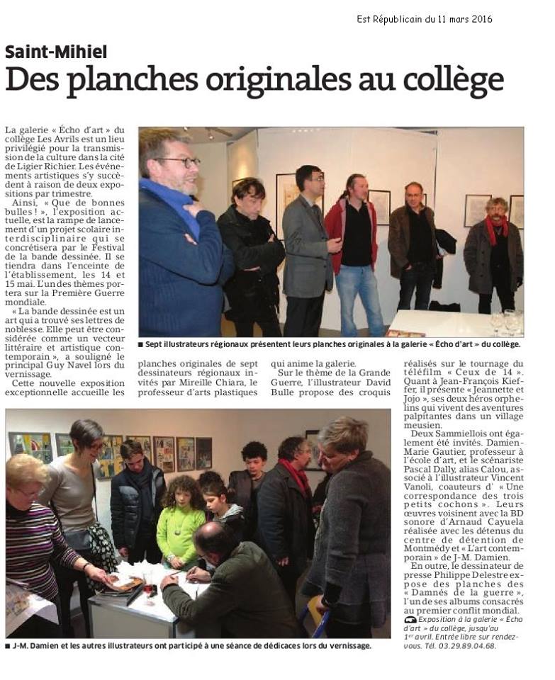 Article sur la 2ème expo du Collège de StMihiel consacré à des artistes de BD invité du festival qui s'y tiendra en mai prochain.