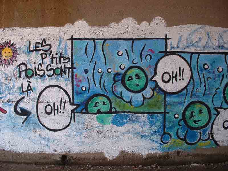 fresque humoristique sur le thème de l'eau réalisé à novéant sur moselle par les soins de l'association 12°5 et mes p'tits bras musclés